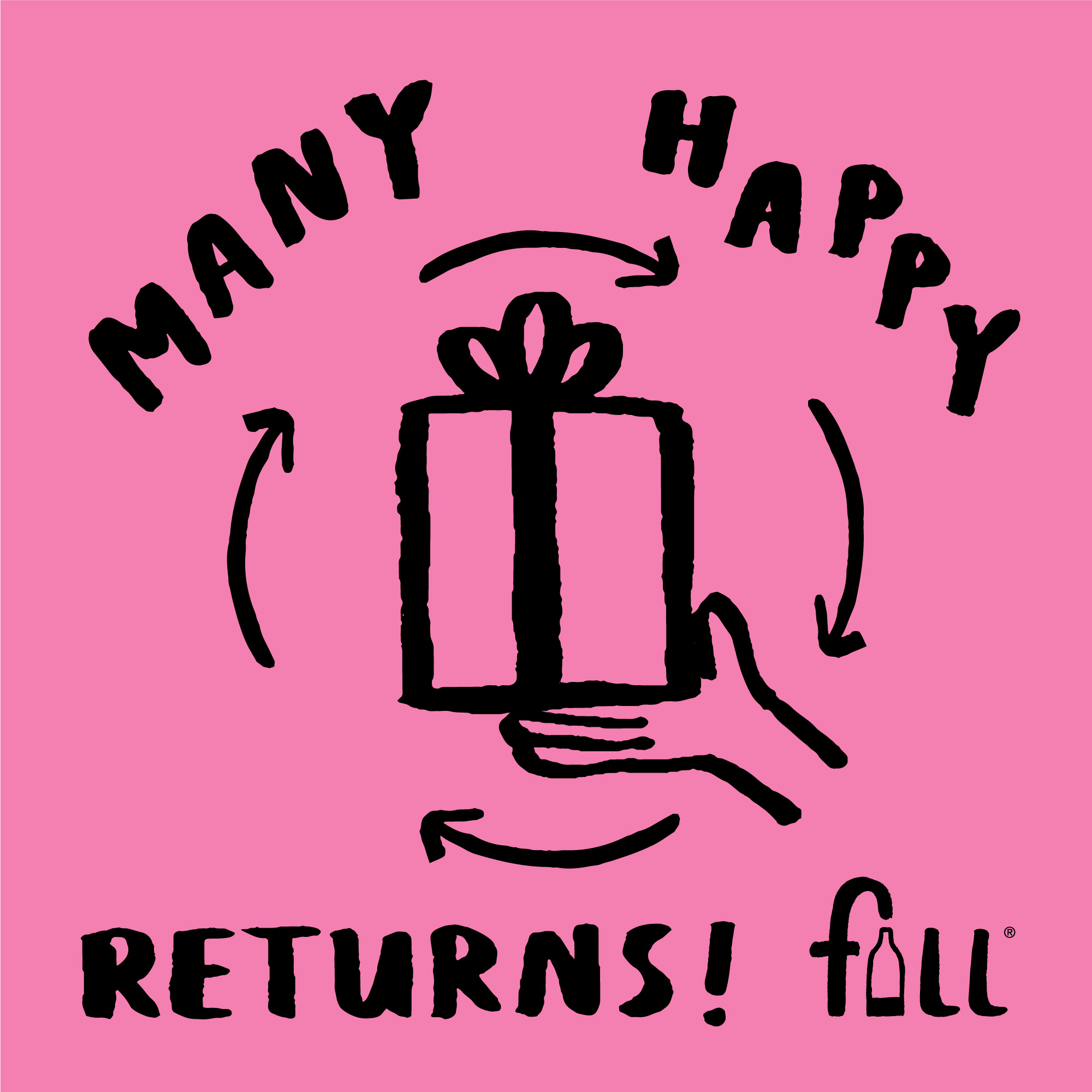Fill refill glass bottles get screen printed once to avoid adding difficult to recycle plastic labels over and over. It’s not easy to do, but we reckon it makes things look and feel a whole lot cooler. All fill refill screens designed by the wonderful Eleonora Marton.