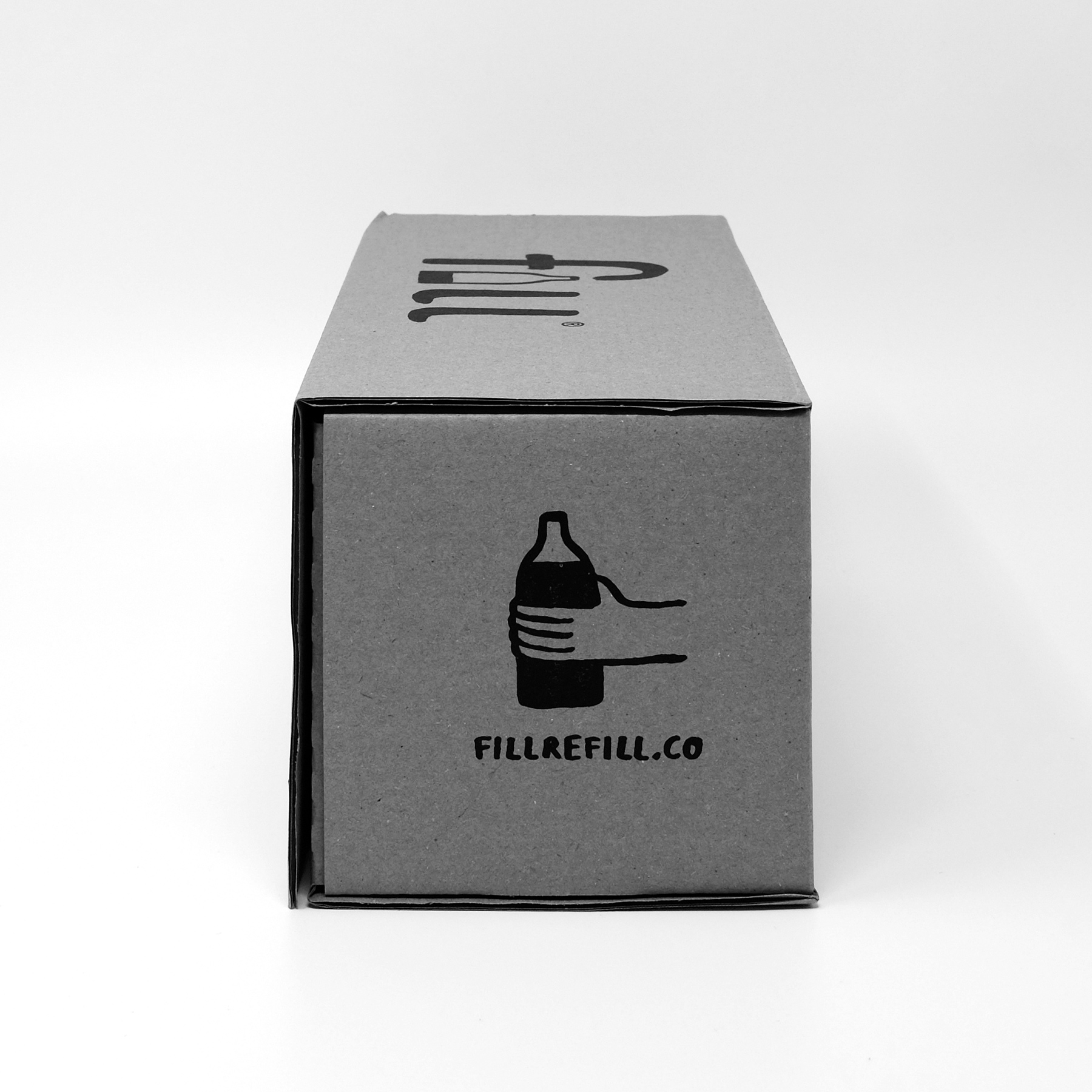 We designed a tough cardboard shipping box to fix fill refill bottles during transit with no need for tape, wrap or any other crap. Transit boxes are made with >60% recycled fibres, fsc certified and printed with vegetable ink.